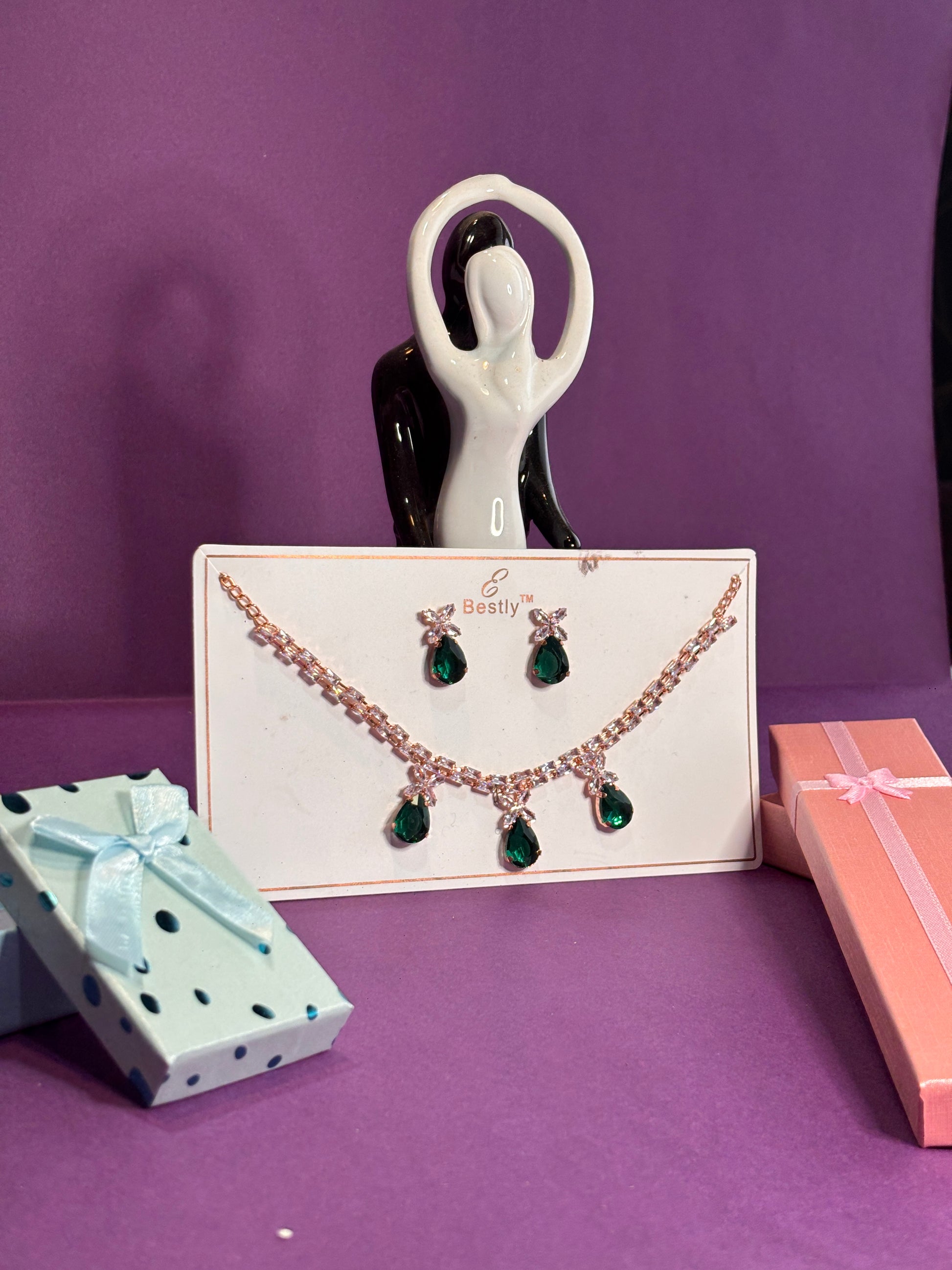 Elevate your elegance with the Blooms Premium Gold-Plated Floral American Diamond Necklace. Expertly crafted, this necklace features intricate floral designs adorned with sparkling American diamonds, set on a durable gold-plated base. Its refined craftsmanship ensures lasting shine and sophistication, making it an ideal accessory for special occasions or enhancing everyday style with a touch of luxury.